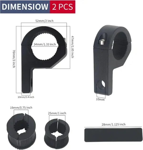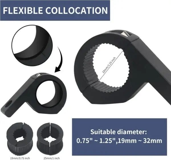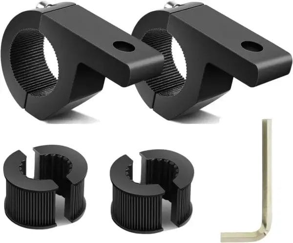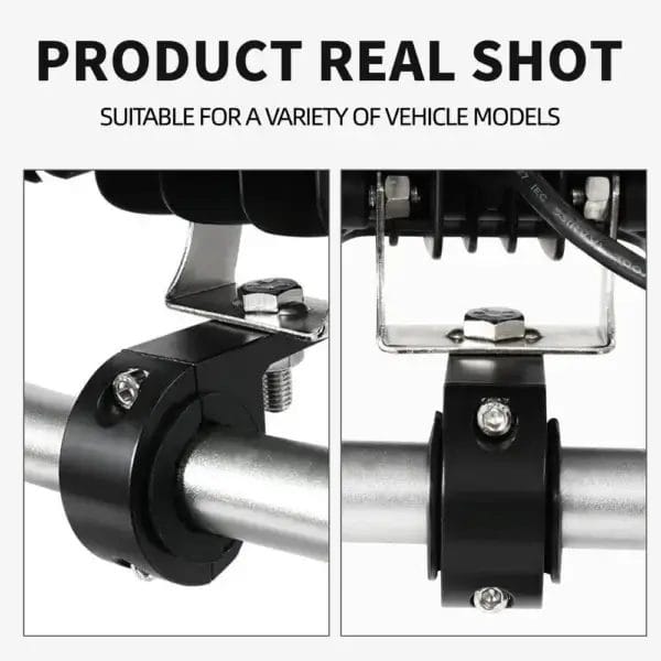 Securely mount auxiliary lights to your ride with this Universal LED Light Bar Mounting Bracket Kit. Made from high-strength aluminum alloy, these heavy-duty clamps include rubber inserts for a vibration-free fit on bars ranging from 19mm to 34mm. Perfect for fog lights, spotlights, and work lights.