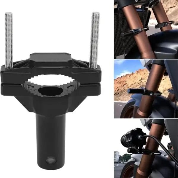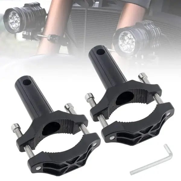 Upgrade your bike’s lighting setup with this 2pc pair of high-strength universal mounting brackets. Designed for maximum versatility, these brackets allow you to securely mount LED spotlights, fog lights, or turn signals to your motorcycle’s front forks, crash bars, or shock absorbers. The adjustable clamp design