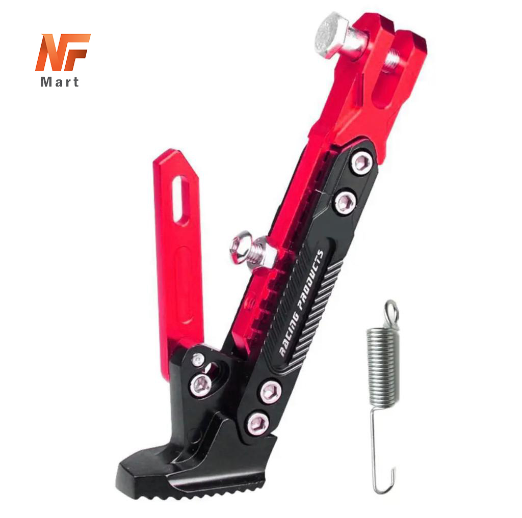 The **Motorcycle Adjustable CNC Metal Foot Bracket** in **red color** is a durable and corrosion-resistant kick side bracket, designed for long-lasting performance. Made from high-quality CNC-machined metal, this adjustable bracket provides stability and support for motorcycles when parked. Its sleek, stylish design adds a visual upgrade to your bike, while ensuring functionality and resistance to wear. A perfect accessory for enhancing both the appearance and utility of your motorcycle.