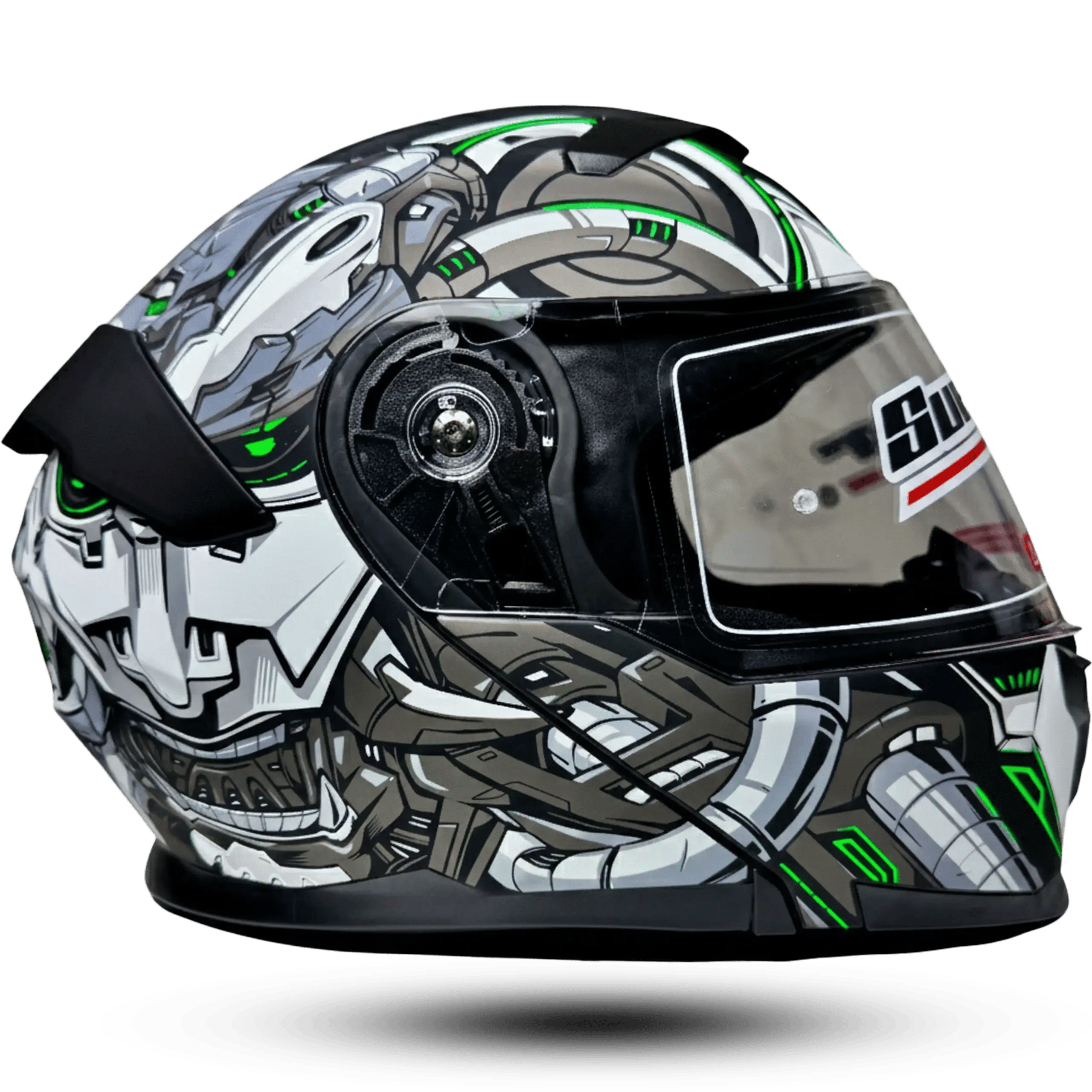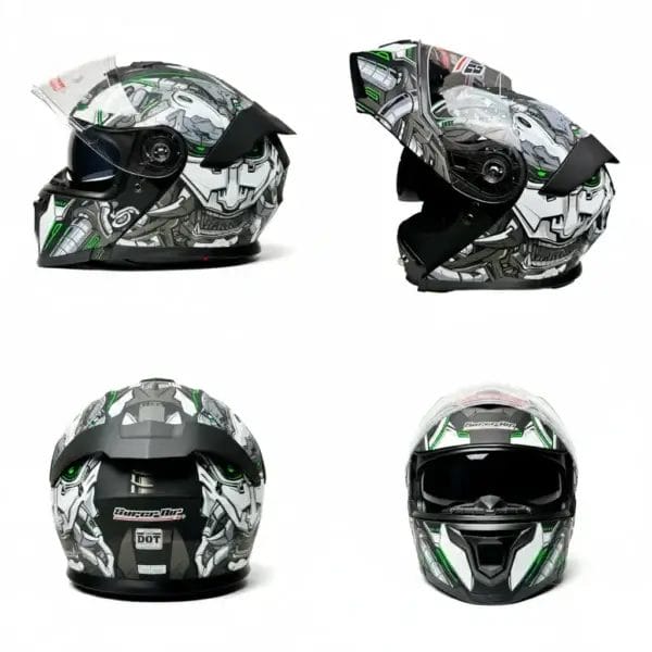 Ride with a futuristic edge. The Super Air 912 Modular Helmet combines aggressive mecha-inspired aesthetics with the versatility of a flip-up design. Featuring a high-impact shell, dual-visor system, and advanced ventilation, it’s built for riders who refuse to compromise on style or safety.