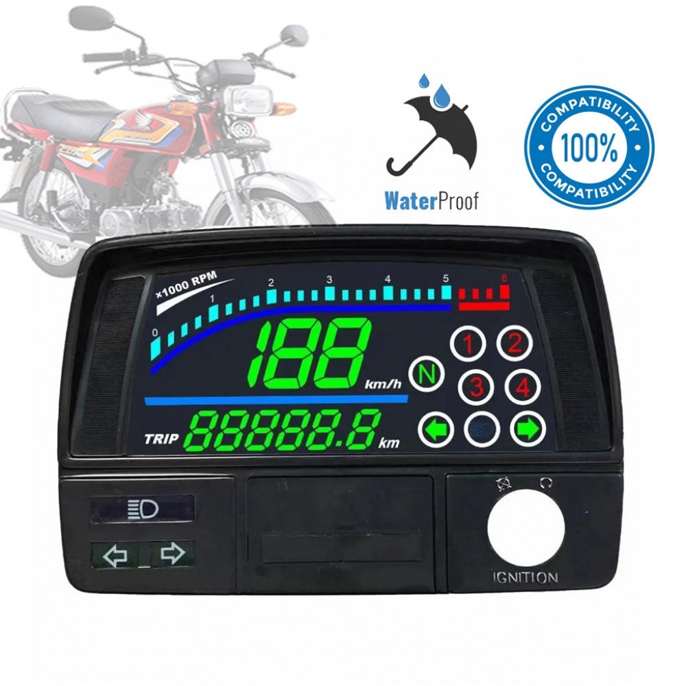 Item: Motorcycle Digital Speedo MeterFitments: HONDA CD70, Chinese 70cc BikesWaterproof Resistant: YES (Cover it while Washing the Bike)Gear Counter Display, Timer, Watch, Speedo Meter (Compatible only if Mechanism is installed)Digital Speedometer color: MULTI COLORSEasy to Install and Universal FitReturn is not Acceptable if the item found damage, broken or burn.