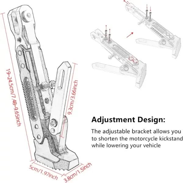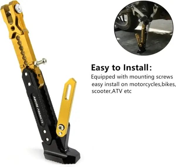 Upgrade your motorcycle’s stability and style with this Universal CNC Adjustable Kickstand. Precision-engineered from high-strength aluminum alloy, this side stand features a fully adjustable height mechanism (19cm to 24.5cm), allowing it to fit a wide variety of motorcycles, scooters, and ATVs perfectly. With a